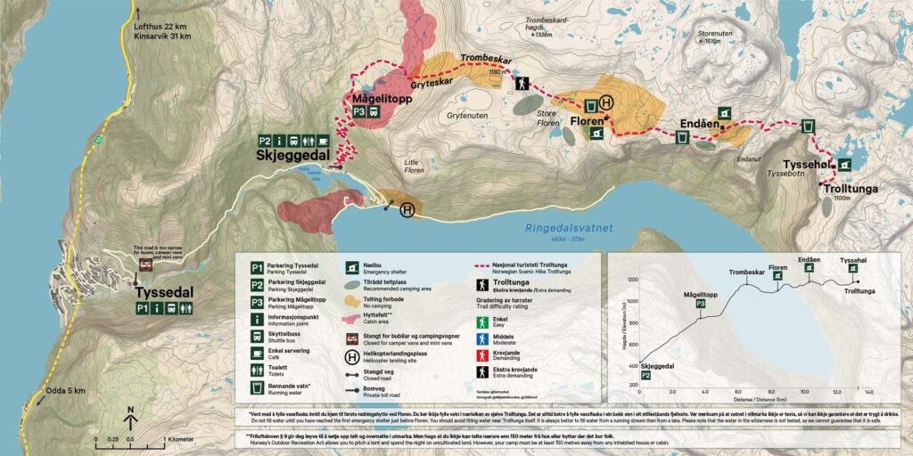 The bus journey from Bergen to Odda is renowned for its spectacular scenery. As you leave Bergen, you'll travel through picturesque valleys, alongside fjords, and over mountains. The route offers glimpses of Norway's stunning natural landscape, including waterfalls, forests, and traditional Norwegian villages. It's an integral part of the experience, so have your camera ready! Upon arrival in Odda, you'll find yourself in a charming town situated at the head of the Sørfjorden, an inner branch of the Hardangerfjorden. Odda is the perfect base for exploring the surrounding natural wonders, most notably the challenging but rewarding hike to Trolltunga.