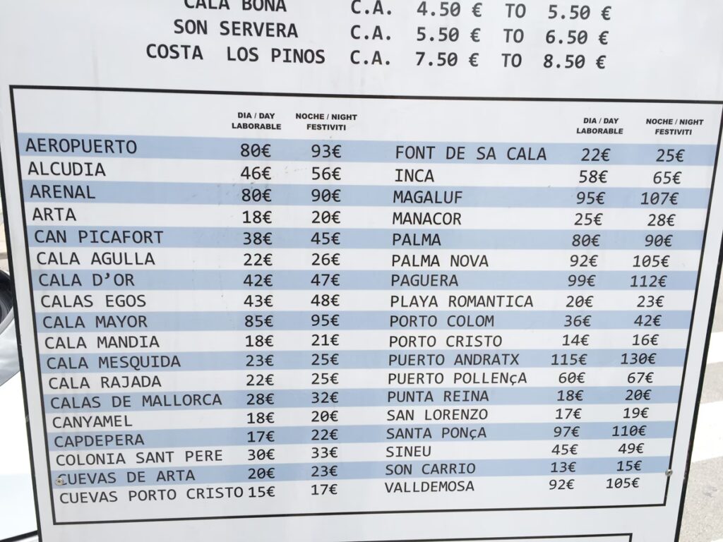 Estimated Transfer Costs (Palma Airport to Calas de Mallorca)